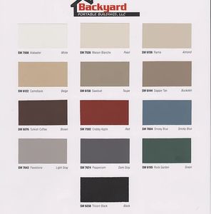 Bring your building to life with your favorite choice of colors! We'll customize your building as you wish! We work with the largest paint companies in the industry where durablitity to withstand the elements is paramount with us! Our product has to last a lifetime so we go in search of companies that we know have the quality products to live up to our standards!